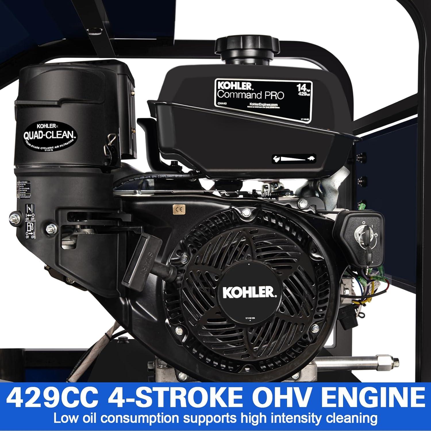 Industrial Performance: Powered by a KOHLER CH440 Command PRO engine, a 429cc, 14 HP single‑cylinder, air‑cooled, 4‑stroke OHV unit engineered for easy starting, quiet operation, and reliable performance in tough environments. This machine is equipped with an Italian AR pump and supports both electric and recoil start for effortless operation.