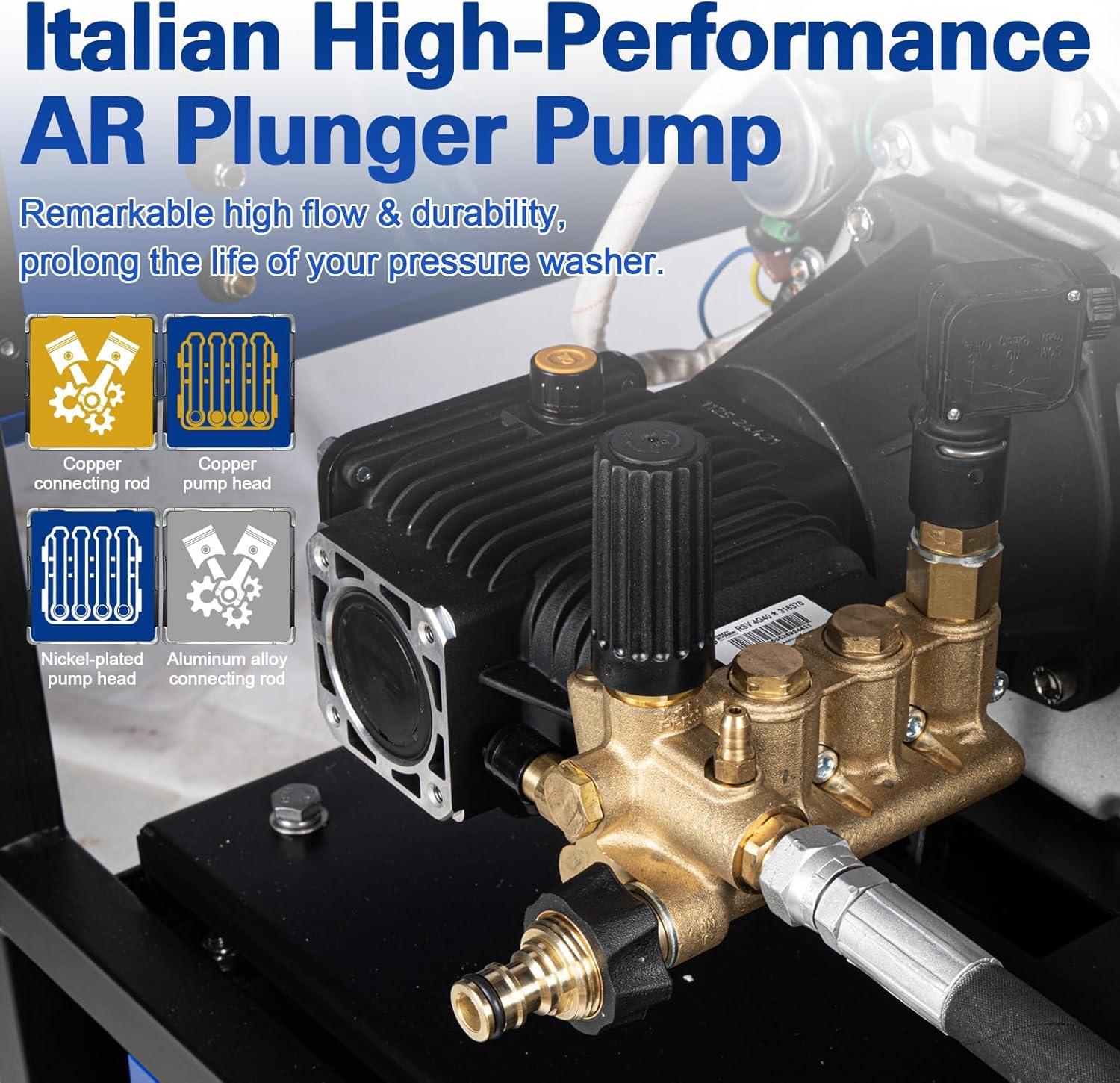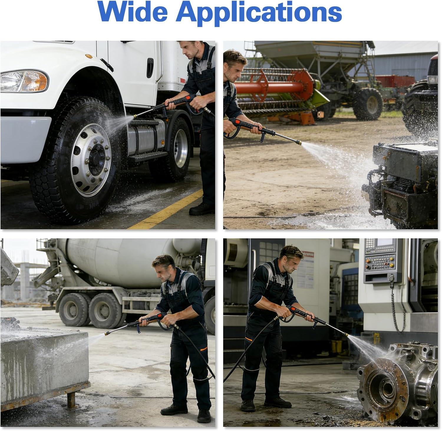 Heavy‑Duty Cleaning Strength: Engineered for long service life across a wide range of tasks, this machine heats water faster and hotter than standard models, 185°F in 2 minutes. Its powerful heat delivery and high pressure ensure thorough removal of tough oil stains, embedded grime, and old paint, making it perfect for tough cleaning jobs.