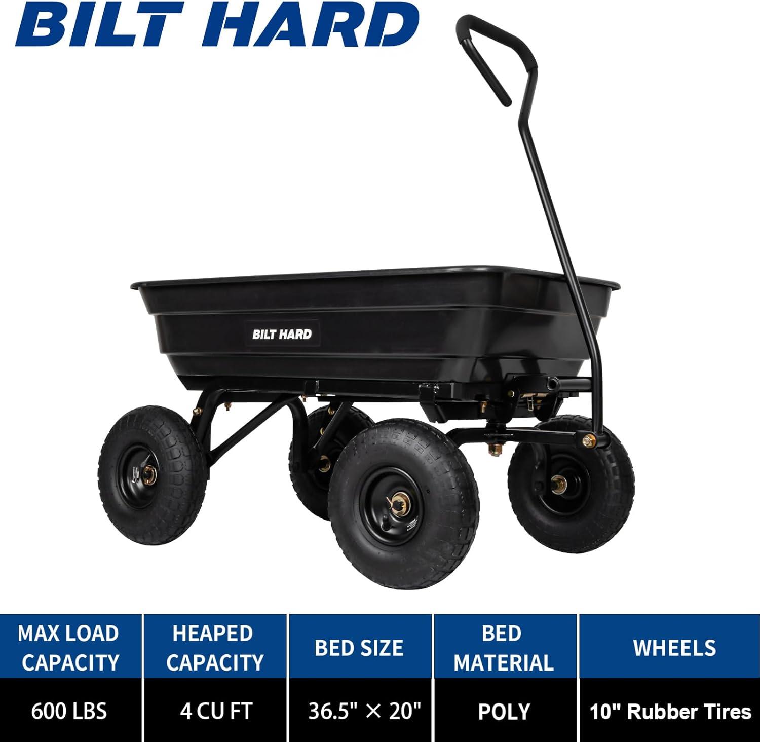 BILT HARD 1200 lbs 7 Cu Ft Poly Garden Dump Cart with 2-in-1 Convertible Handle, No Flat Tires, Quick Release, Dump Wagon Heavy Duty for Yard, Outdoor(600 Lbs)