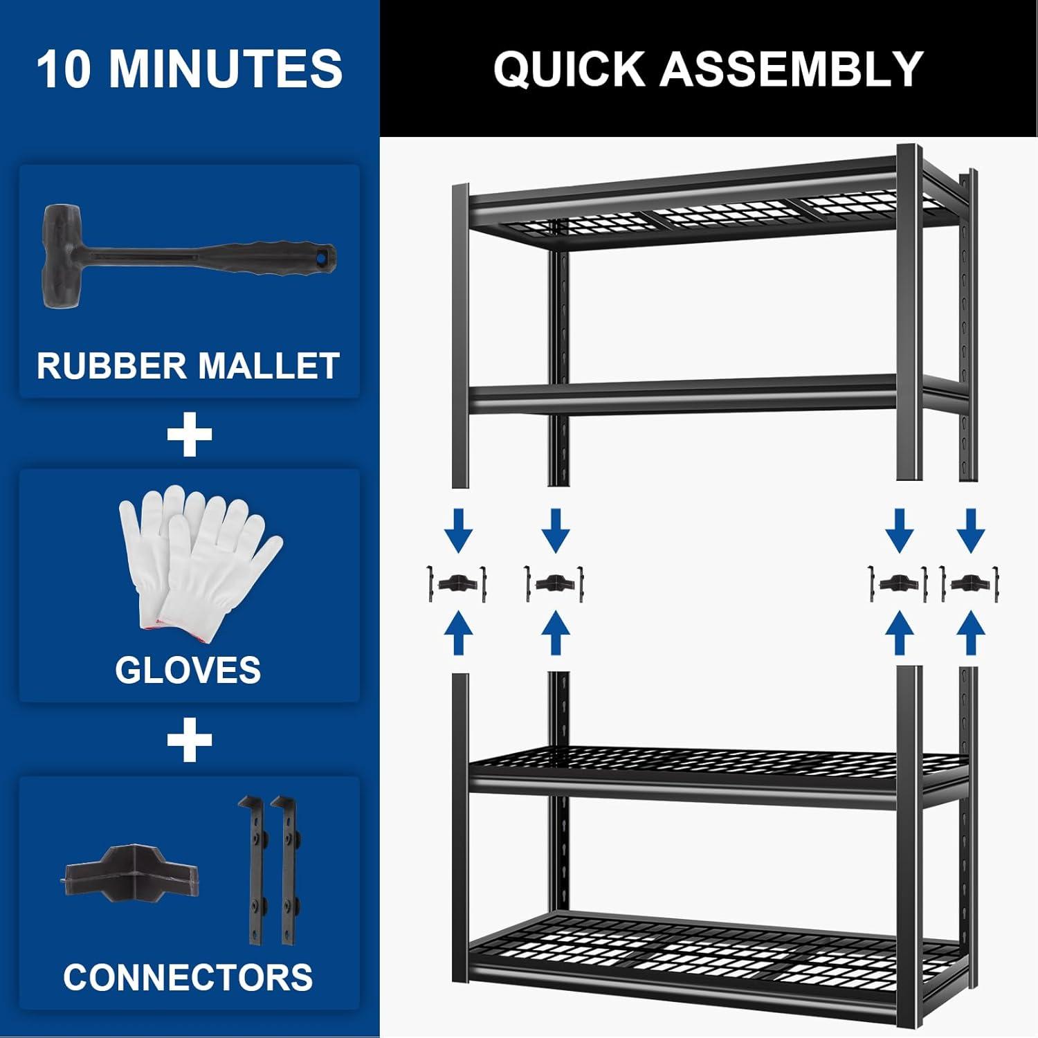 Easy Assembly – No professional tools are required. With an easy-to-follow manual and step-by-step video, you can set up the utility shelving and start organizing in no time.
