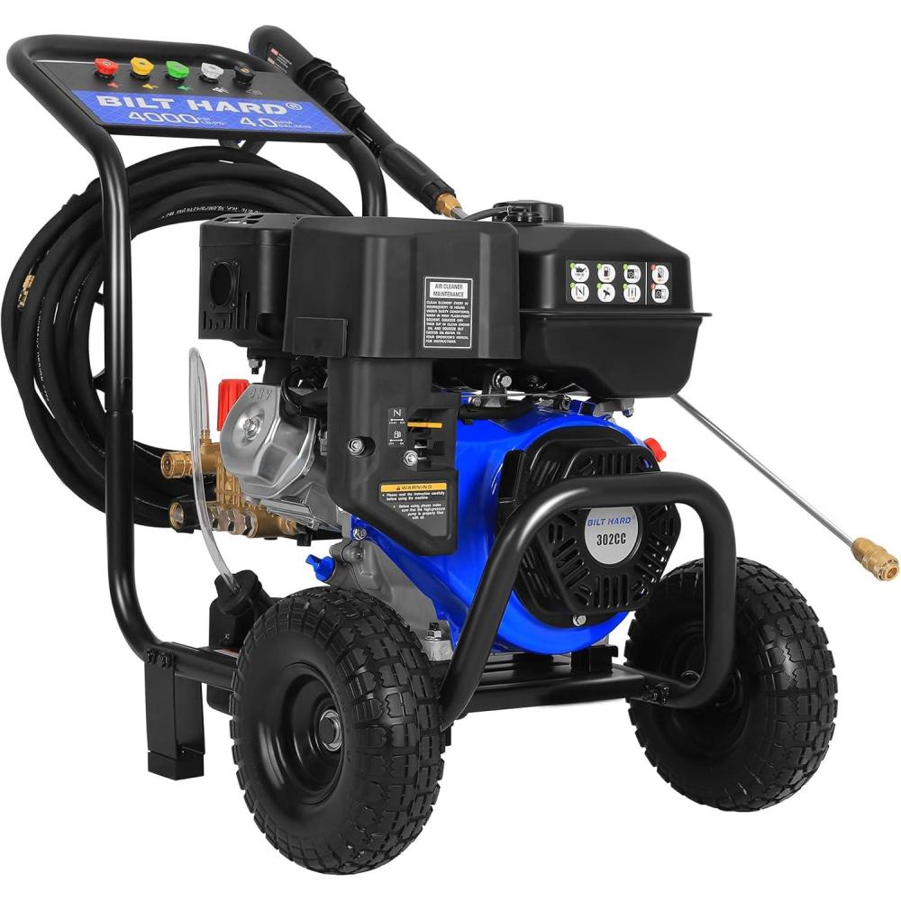 BILT HARD 3500 PSI 2.5 GPM Gas Pressure Washer, 224cc 4-Cycle Engine, Heavy Duty Gas Power Pressure Washer with Spray Gun and Wand, 5 Quick Connect Nozzle Tips, 3/5″×25′ Hose, 49-State(4000 PSI 302cc)