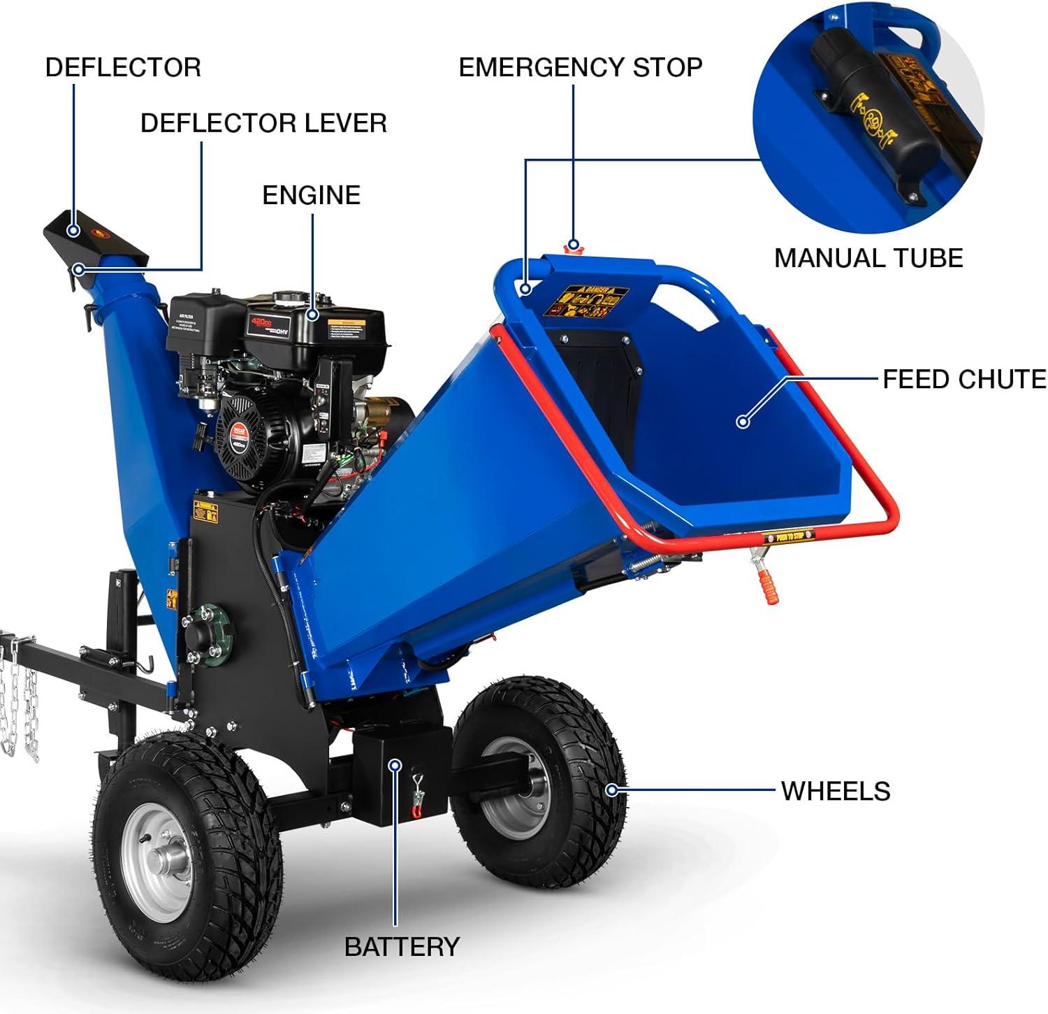 Powerful 4-cycle 420cc Gas Engine: The BILT HARD 6'' towable wood chipper is equipped with B&S gasoline engine (13.5HP 420cc). Supported by a reliable 12V 20Ah lead-acid battery, it ensures quick and effortless electric start every time.