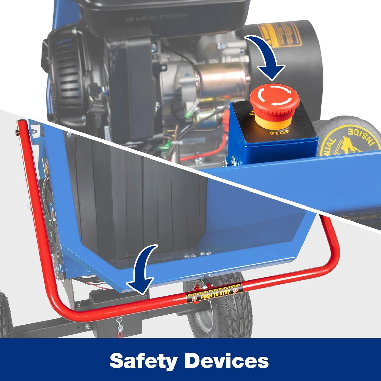 Safety Design: The feeding chute features dual emergency shut-off controls for enhanced safety – a convenient stop button on top and a press bar at the bottom. Either control lets you immediately shut down the machine in an emergency, giving you peace of mind while you work.